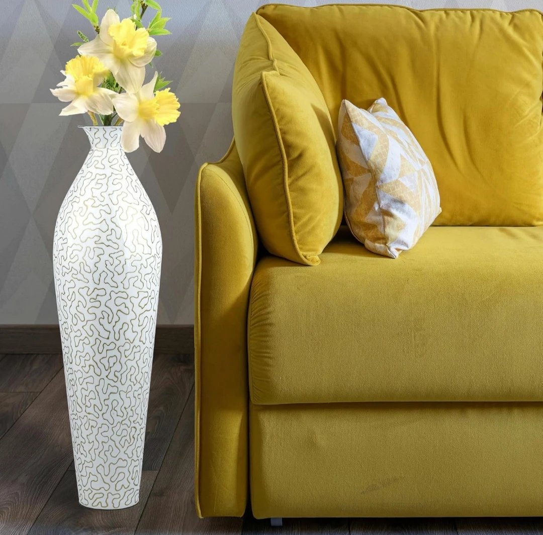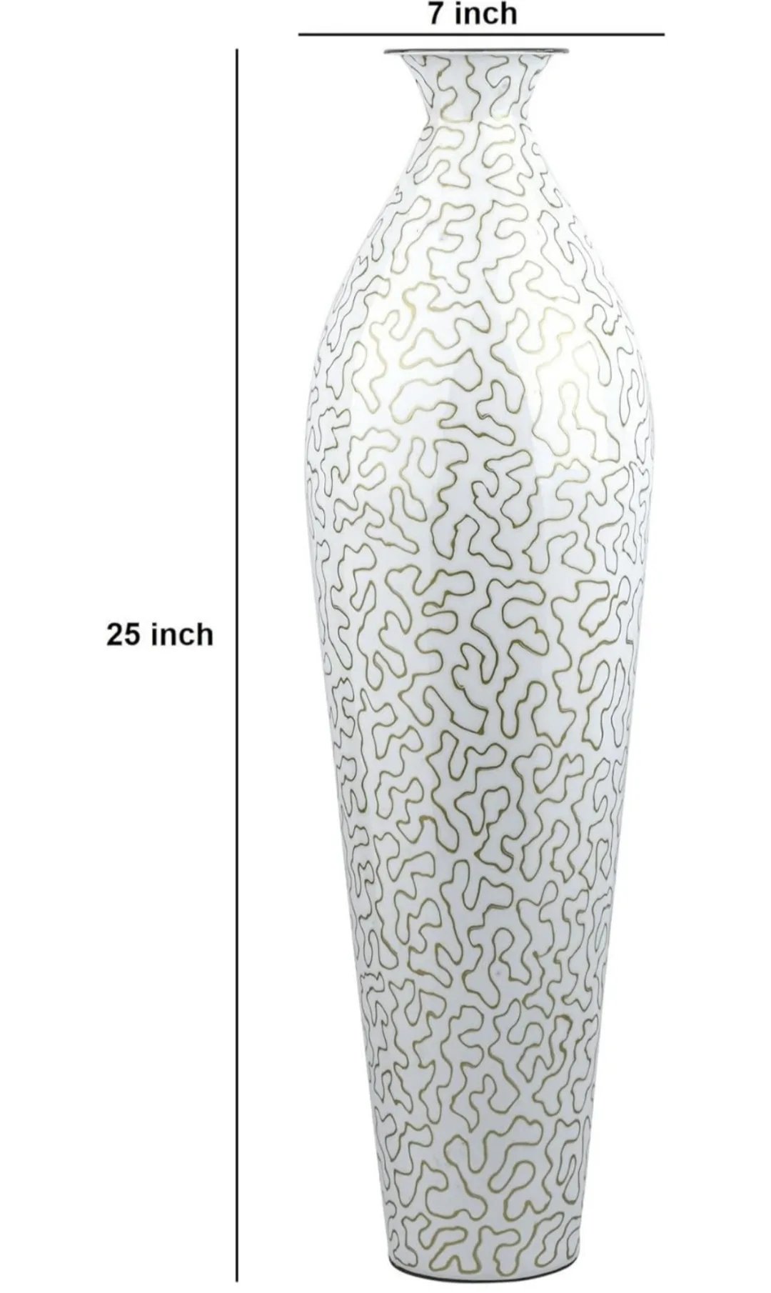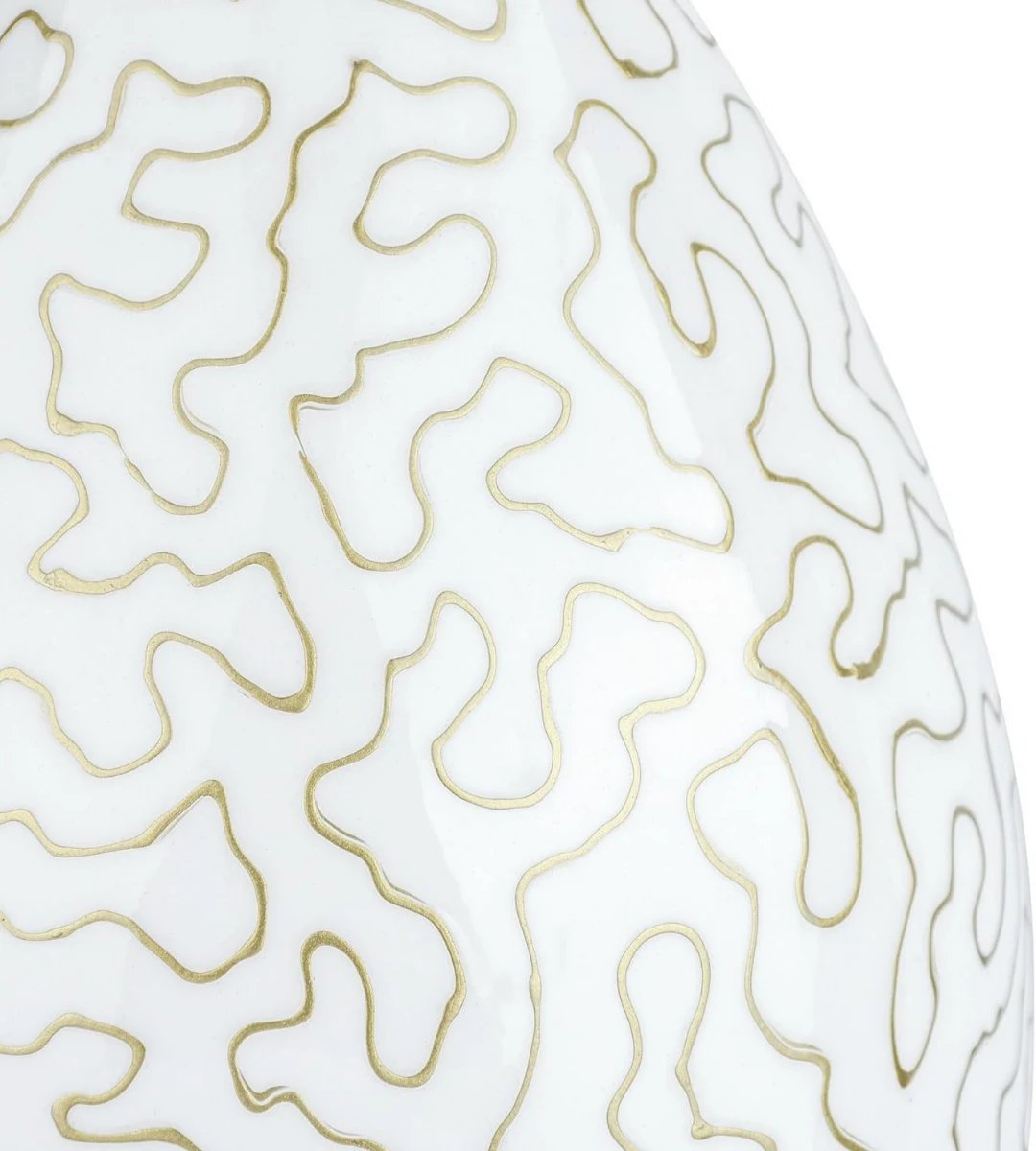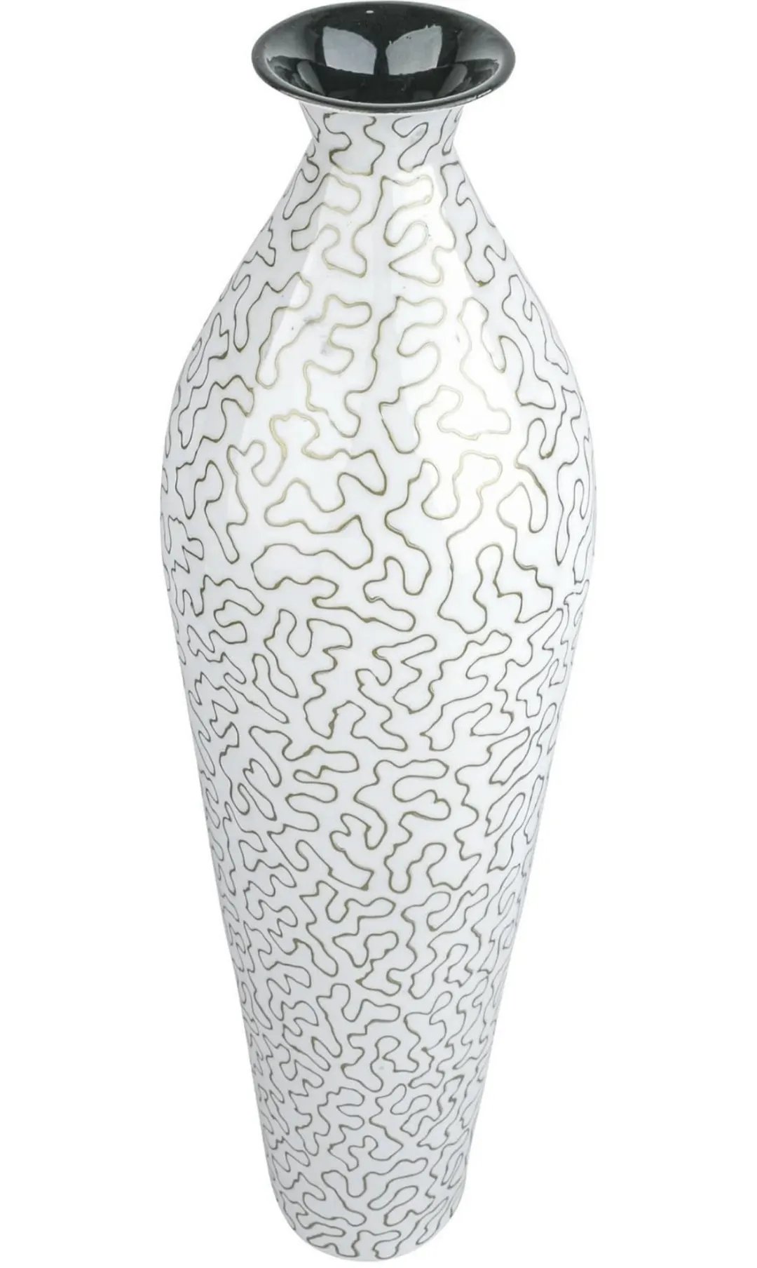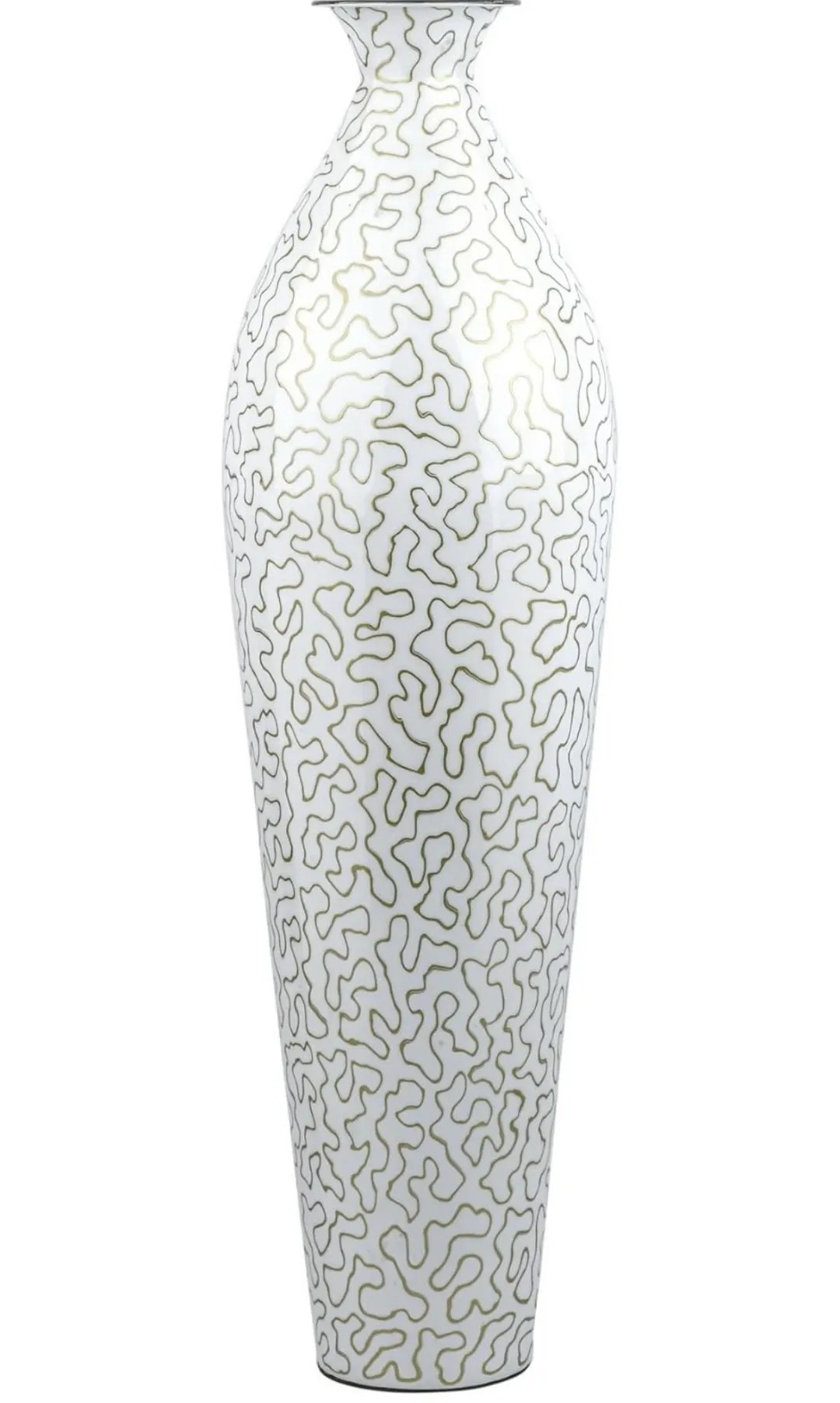 Get Free Shipping on all orders. Elegant tall ceramic vase with a glossy white finish and intricate gold coral-like patterns.