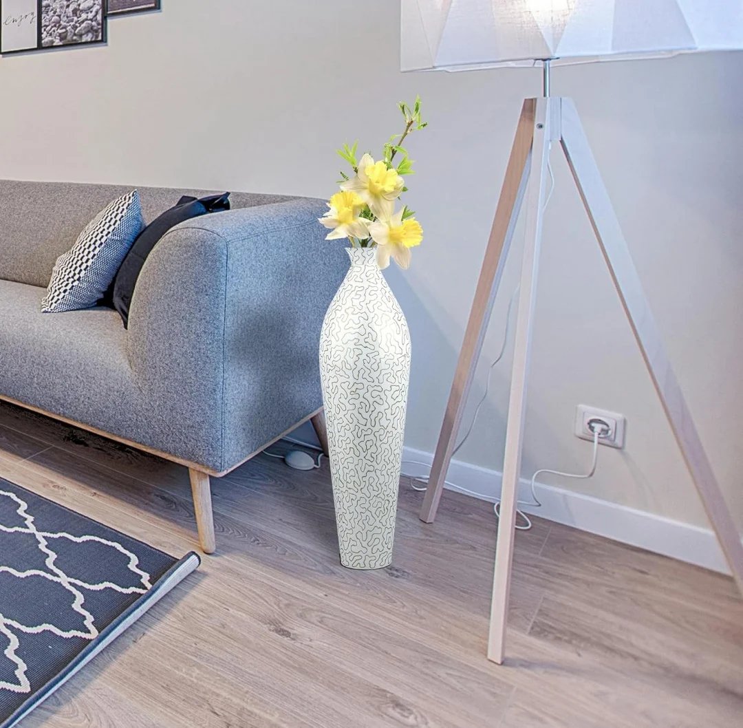 Add a sophisticated touch to your interior decor with this Coral Maze Ceramic Floor Vase. Standing tall with a graceful silhouette, this vase features a smooth white base adorned with a labyrinth of delicate gold lines resembling coral or abstract maze designs. Ideal for displaying dried arrangements or standing alone as a statement piece, it brings a modern yet artistic charm to any space—perfect for living rooms, hallways, or office lobbies.
