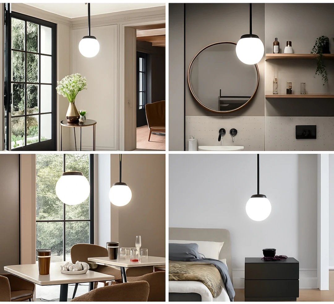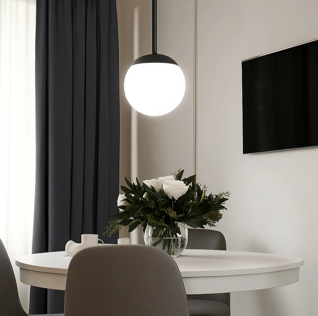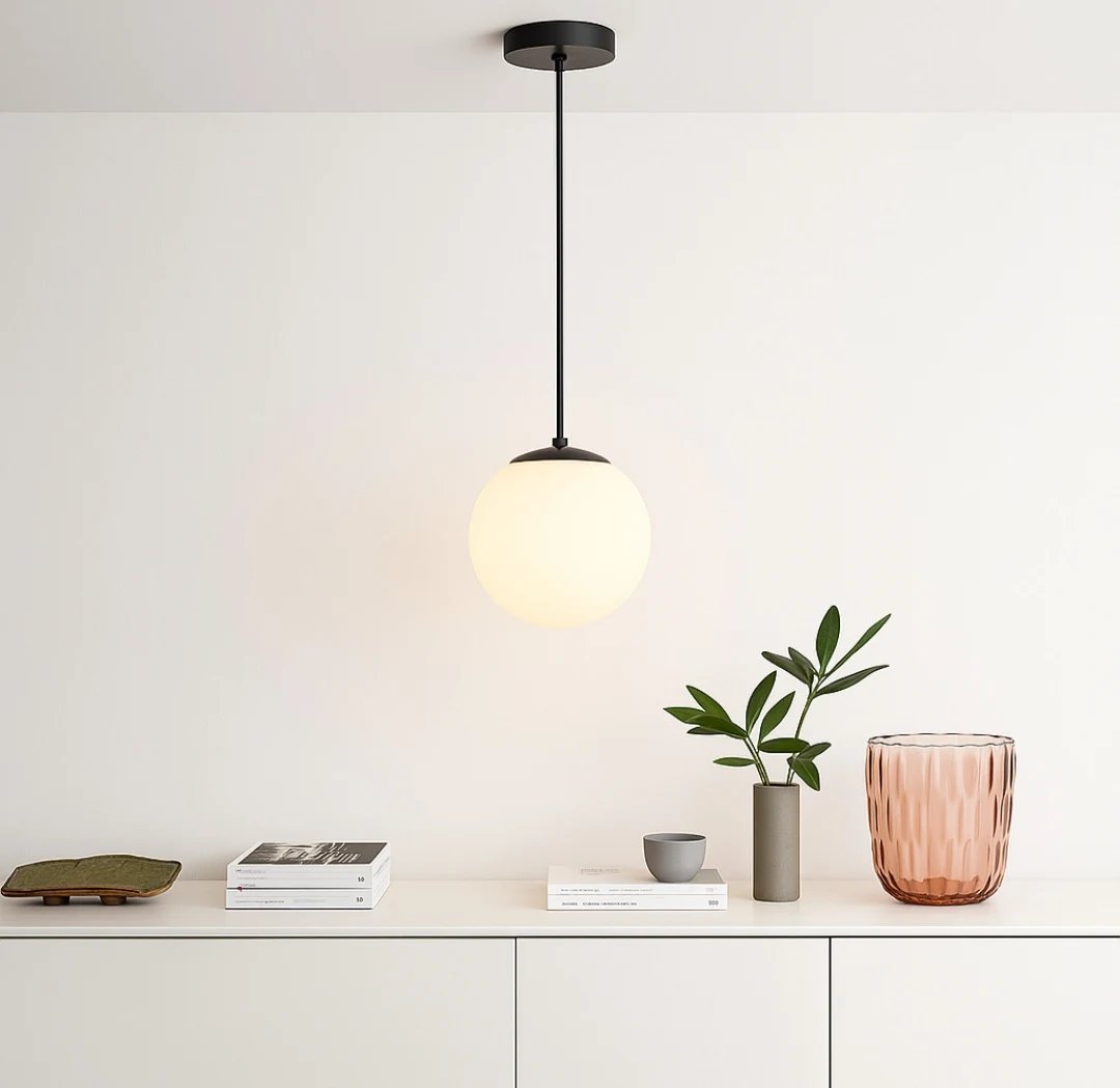Introducing the Halo Orb Minimal Pendant — a statement in serene design. This pendant light floats effortlessly with its sleek black stem and frosted globe, casting a calm, ambient radiance across your space. Inspired by modern Japandi and Nordic interiors, its balanced form blends utility with beauty. Ideal for thoughtful spaces — from curated reading corners to serene entryways — the Halo Orb transforms everyday lighting into a quiet visual poem.